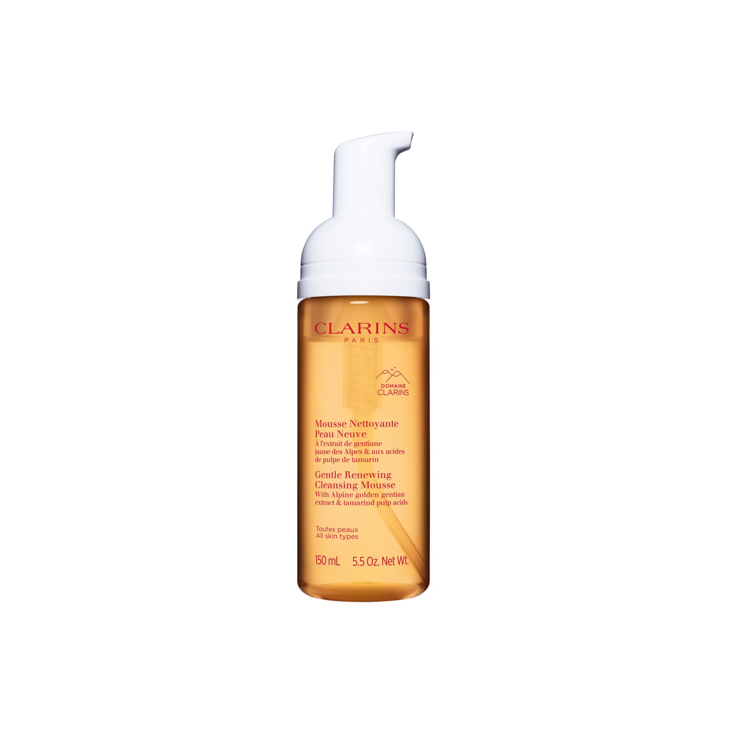 Schiuma per tutti i terreni formulata con il nuovo duo Gentle Complex (estratti di genziana gialla biologica e melissa biologica), proveniente dalla nostra tenuta Clarins.