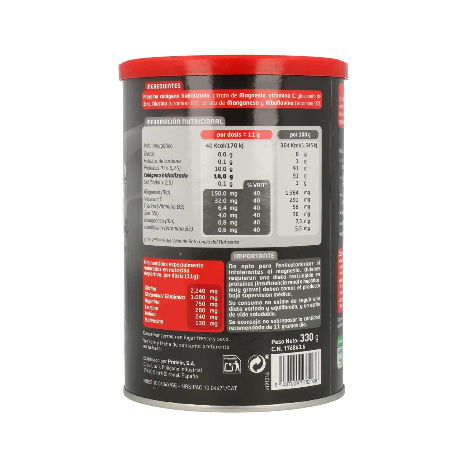 Grazie alla funzionalità dei suoi componenti, contribuisce a conservare e aumentare la massa muscolare (proteina collagene) e al funzionamento normale dei muscoli (magnesio), al mantenimento delle ossa in condizioni normali (proteina collagene, magnesio, manganese e zinco), alla formazione normale di collagene per il funzionamento normale di cartilagini e ossa (vitamina C), e quindi, delle articolazioni, alla formazione normale del tessuto connettivo (manganese), al metabolismo energetico normale (magnesio, manganese e vitamina C) e a diminire la stanchezza e la fatica (magnesio e vitamina B2, B3 e C).