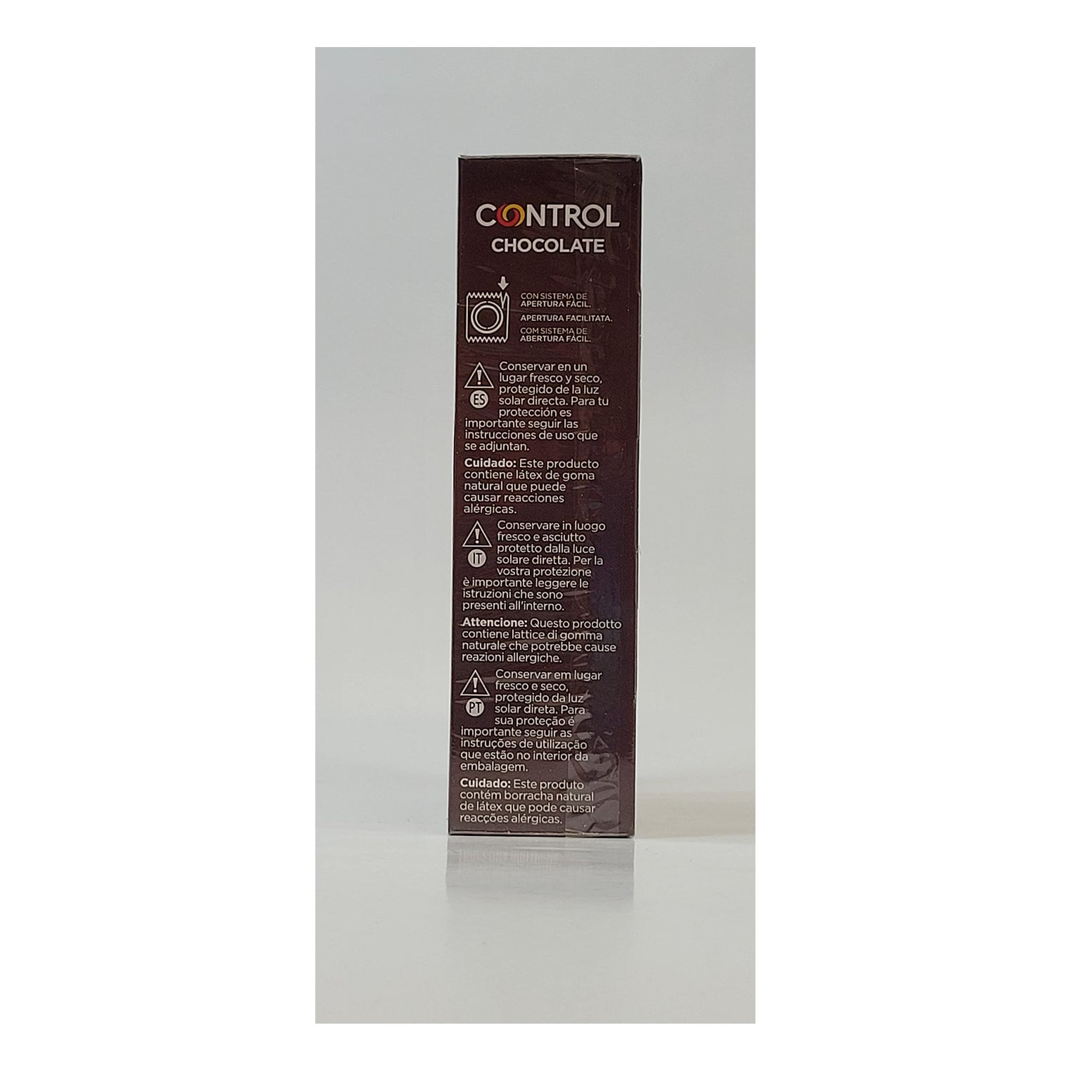 Control Chocolate Addiction è un preservativo in lattice che aggiunge un dolce sapore afrodisiaco di cioccolato alla tua relazione. Questo preservativo è marrone, liscio, sottile e completamente fisiologicamente adattabile.