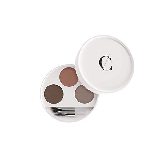 Kit per sopracciglia del marchio Couleur Caramel, prodotto cosmetico ideale per strutturare lo sguardo, densificare le zone scarse e correggere la linea delle sopracciglia. Il set include 3 tonalità in polvere, 1 mini spazzola e 1 pennello per migliorare l'applicazione. Le tonalità sono state formulate con pigmenti minerali e ingredienti naturali, inclusi gli oli vegetali di avocado e albicocca. Prodotto di cosmetica ecologica certificata e adatto ai vegani. Tonalità di colore: N°28 biondo.