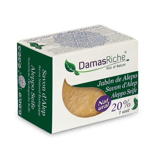 Il sapone di Aleppo è naturale e viene prodotto a mano con olio d'oliva e olio di alloro. È stato tradizionalmente utilizzato da persone con problemi di pelle. L'olio di alloro ha proprietà detergenti, quindi è ideale per pulire le ferite. Contribuisce a lasciare la pelle luminosa e nutrita.