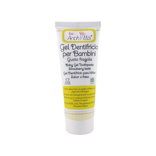 Dentifricio per bambini di Anthyllis, formulato con Aloe vera e Malva. Gel dentifricio per bambini, adatto a partire dai primi denti, con aroma di fragola. La composizione a basso livello di abrasione garantisce sicurezza per la pulizia dei denti da latte. Aiuta a prevenire la formazione della carie e garantisce l'igiene della bocca. Gli ingredienti hanno origine ecologica.