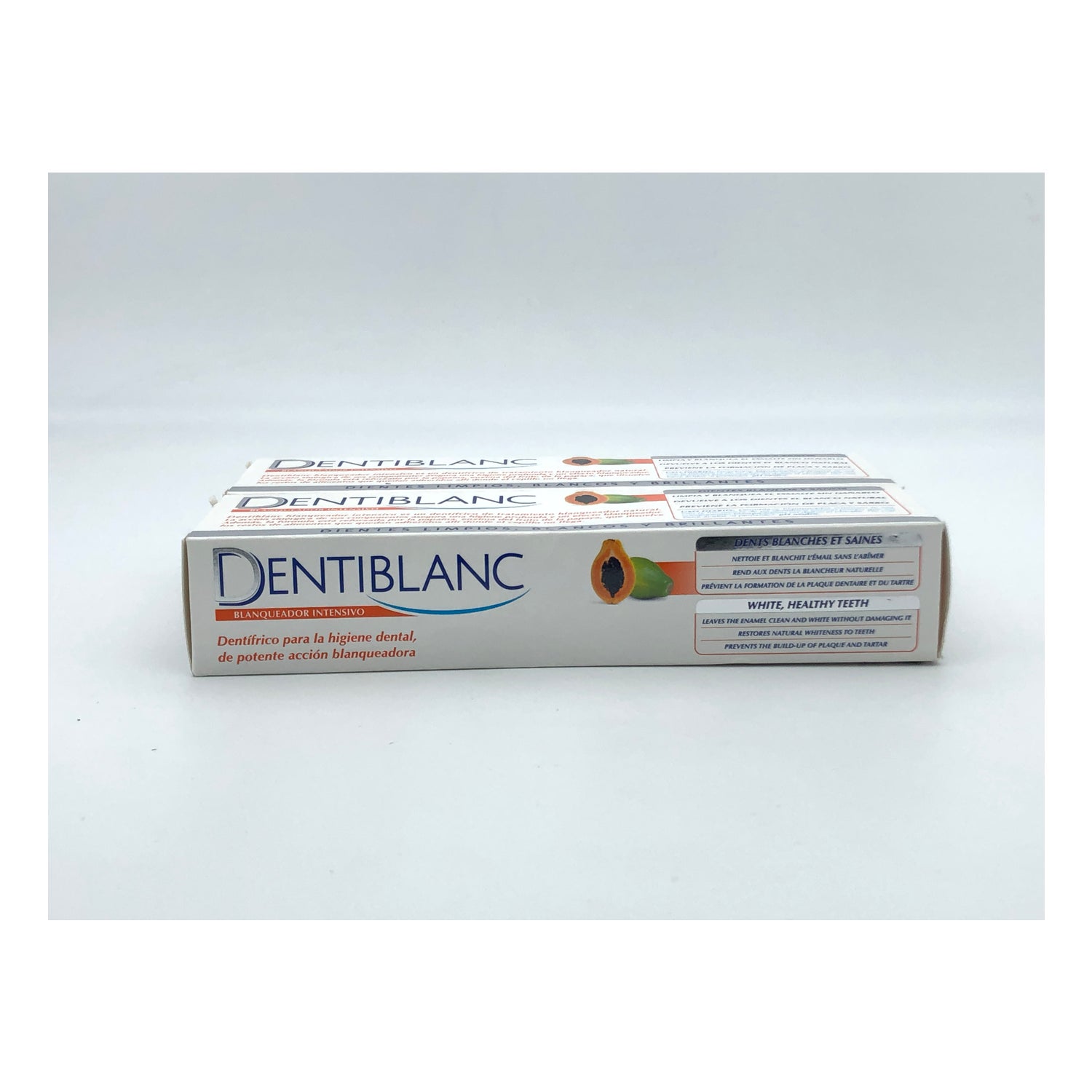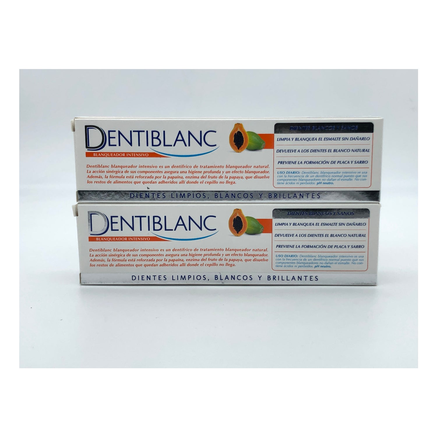 Dentiblanc Sbiancante Intensivo ha una formula magica a base di papaina, un enzima ricavato dal frutto della papaya, che scioglie i residui di cibo che rimangono attaccati alle aree della bocca che gli spazzolini tradizionali non riescono a raggiungere. Migliora e approfondisce la pulizia di denti e gengive e riporta il sorriso al suo colore naturale.