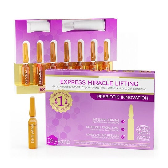 Miracle lifting express treatment, un prodotto formulato con acido ialuronico, un agente utilizzato per ridurre le rughe e promuovere la compattezza e l'idratazione della pelle. Contiene inoltre il fermento prebiotico di Pichiav pastoris che favorisce la funzione della microflora cutanea e migliora la biodisponibilità dei principi attivi. Le piante terapeutiche presenti in questa formula stimolano la rigenerazione. Il prodotto può essere utilizzato anche sulle pelli più sensibili.