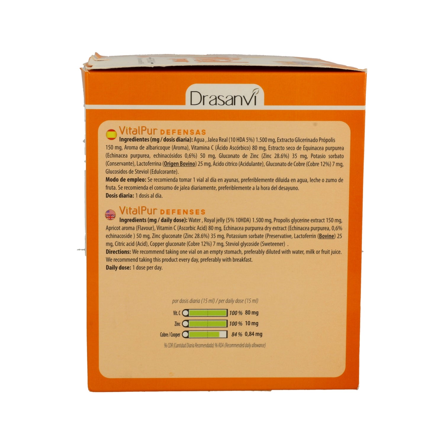 Drasanvi Vitalpur Pappa Reale Difese 15ml 20 unità è un integratore alimentare che aiuta ad aumentare le difese e a rafforzare il sistema immunitario. Contiene pappa reale, zinco, rame e vitamina C.