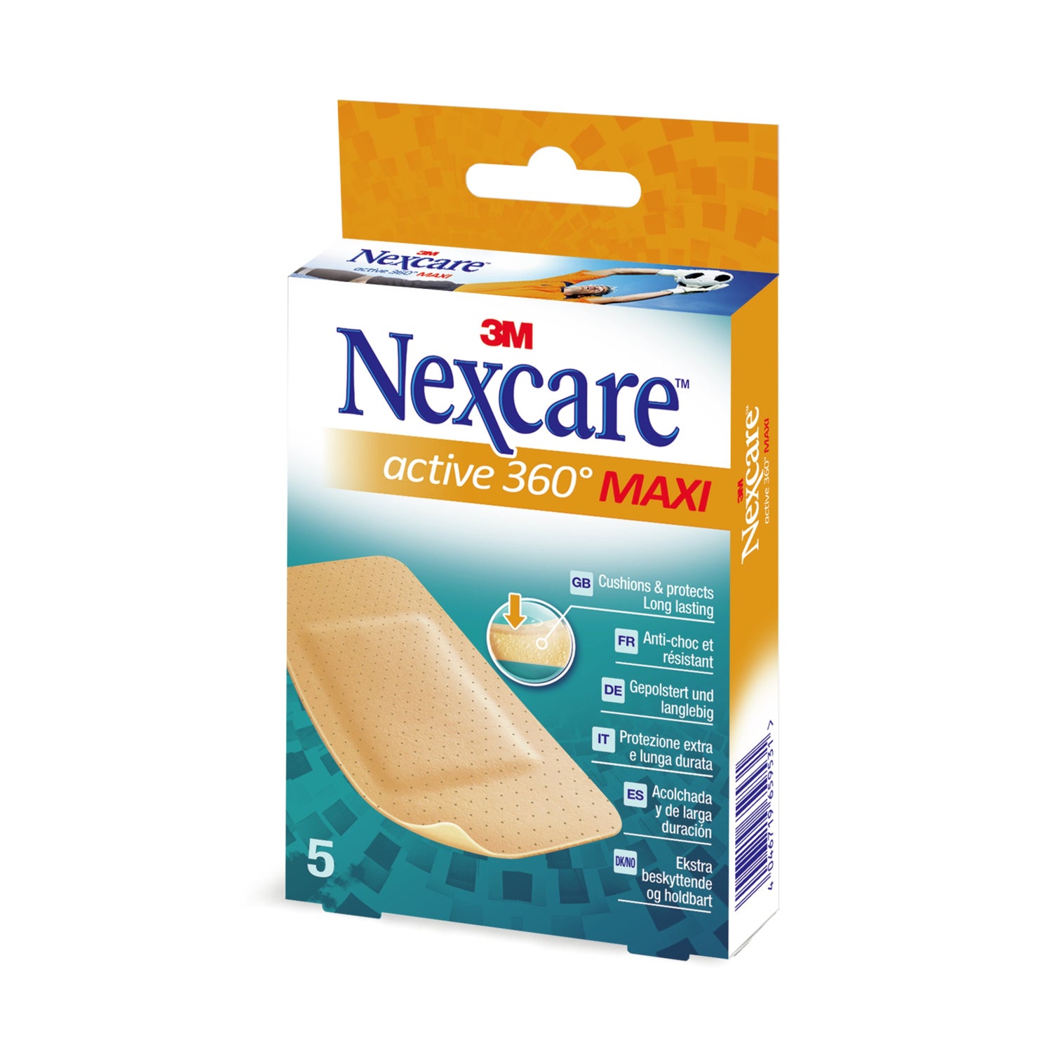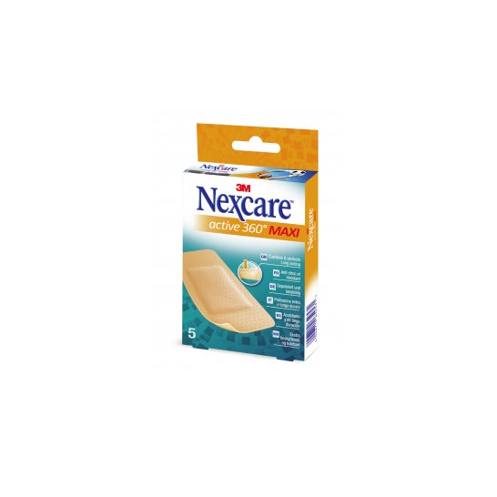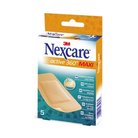 Nexcare® Active 360º Maxi è una pratica medicazione imbottita e di lunga durata che protegge e sigilla la ferita grazie al suo cuscinetto assorbente e traspirante, impedendo l'ingresso di germi e sporcizia.