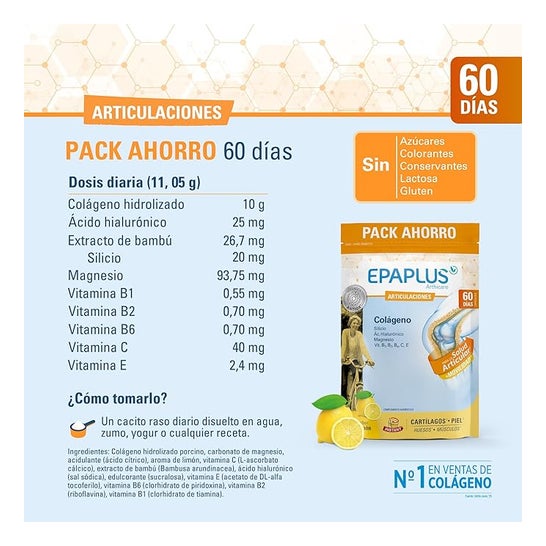 Epaplus Arthicare Collagen Silicon Lemon Flavour 668g è un integratore alimentare che contribuisce al mantenimento e al funzionamento ottimale di ossa e articolazioni e aiuta a prevenire l'usura della cartilagine