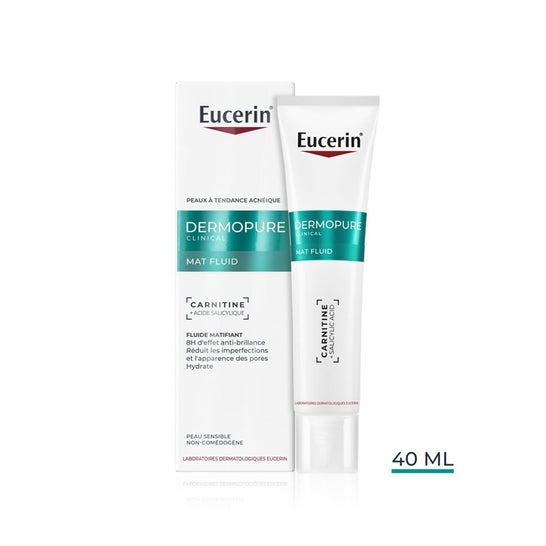 Eucerin DermoPure Clinical Mat Fluid 40ml è un fluido viso idratante e opacizzante per uso quotidiano indicato per pelli grasse con imperfezioni e soggette ad acne.