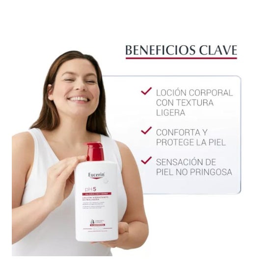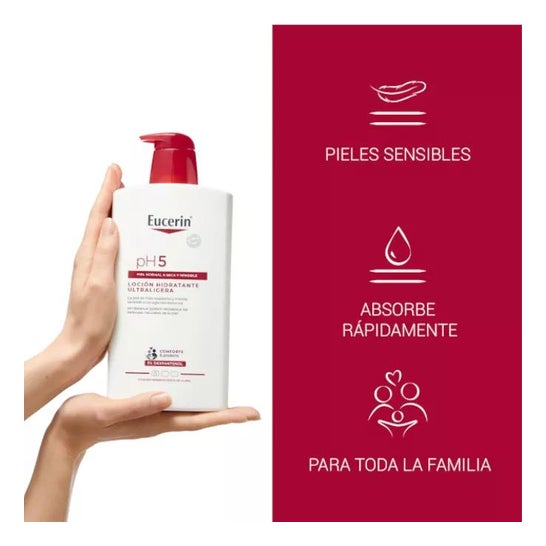 Eucerin Ultralight Moisturising Lotion pH5 1000ml è una delicata lozione per il corpo che aiuta a lenire le irritazioni e a ridurre la disidratazione della pelle sensibile e secca.