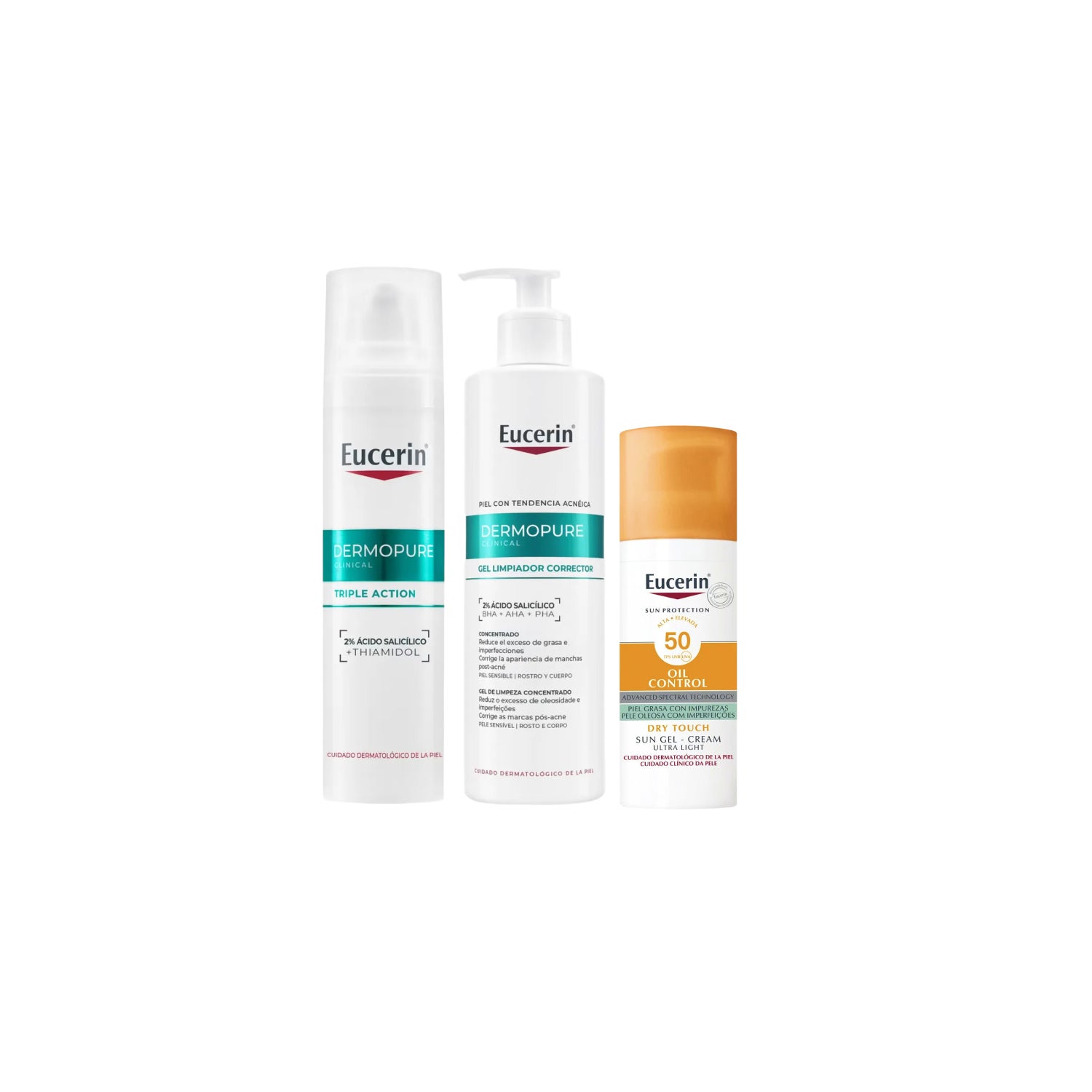 Eucerin Sun Gel-Crema Oil Control Dry Touch SPF50 50ml è un protezione solare viso per uso quotidiano per pelli grasse che aiuta a combattere gli effetti nocivi delle radiazioni solari UVA e UVB.