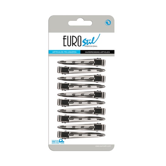 Grande pinza di metallo ricurva adatta a tenere i riccioli e a marcare. Un accessorio da parrucchiere molto pratico per afferrare e maneggiare i capelli. Ha un meccanismo molto pratico e facile da aprire e chiudere, e quando si chiude si stringe intorno ai capelli per tenerli in posizione. Raccoglie i capelli in modo efficace.