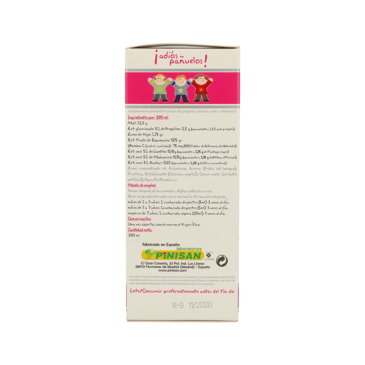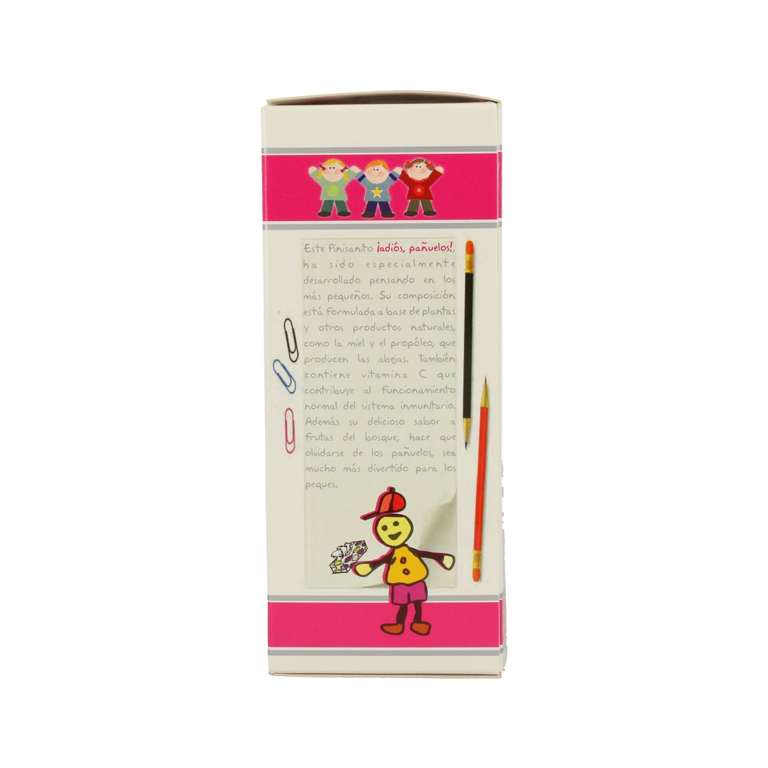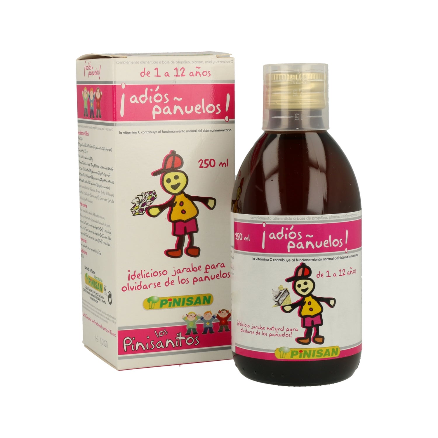 Pinisan adiós pañuelos è un integratore alimentare creato per i bambini da 1 a 12 anni che contribuisce al rafforzamento delle loro difese, stimola il sistema immunitario e aiuta a decongestionare le vie respiratorie.