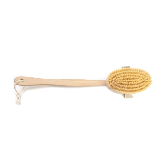 Spazzola per il corpo in legno di faggio con setole naturali che aiuta a pulire e fornire un'esfoliazione delicata e profonda, favorisce la circolazione. Rimuove le cellule morte. Ideale per massaggi anticellulite. L'impugnatura lunga e sottile è progettata per raggiungere aree difficili come i glutei, le cosce e la schiena.