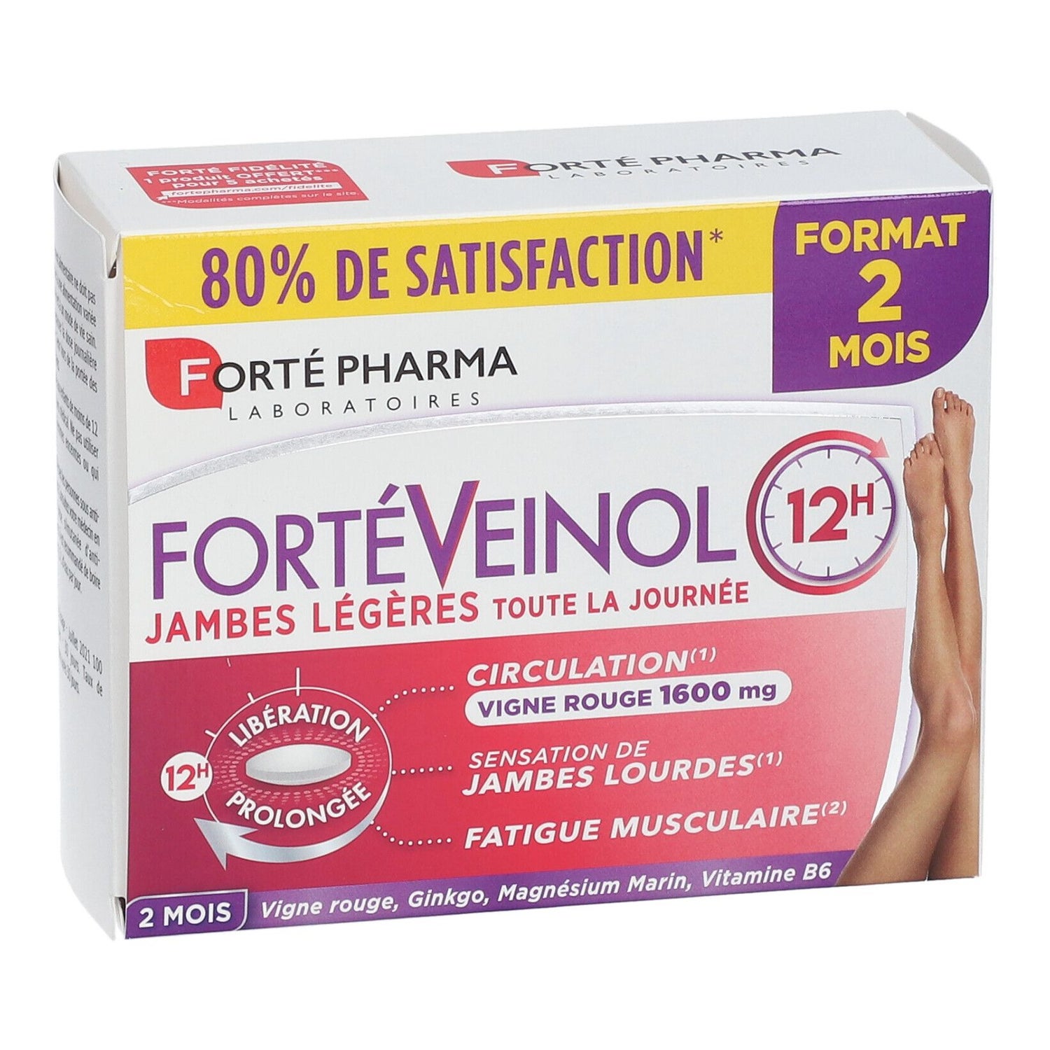 Forté Pharma FortéVeinol 12h 60 Compresse è un integratore alimentare a rilascio prolungato che aiuta a ridurre la sensazione di gambe pesanti. Contenendo vite rossa (1600 mg), ginkgo biloba e magnesio marino, FortéVeinol drena e favorisce la circolazione sanguigna, promuove il corretto funzionamento dei vasi sanguigni e dei capillari e rilassa la muscolatura per una sensazione di gambe leggere e di comfort.Solo per gli adulti e non è raccomandato per le persone che assumono antidepressivi, per le donne in gravidanza o in fase di allattamento.Gli integratori alimentari non devono mai essere utilizzati come sostituti di una dieta sana ed equilibrata e di uno stile di vita sano.
