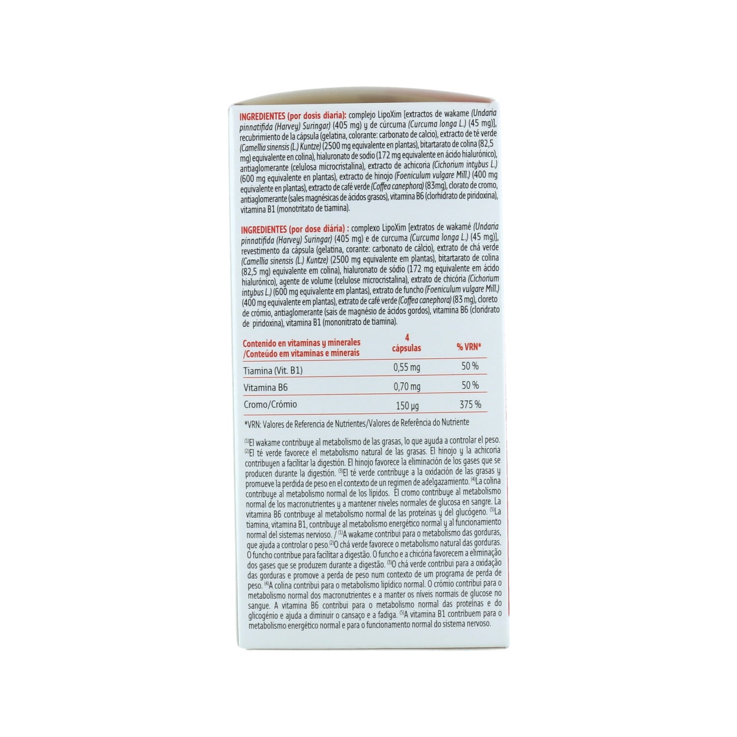 Il wakame contribuisce al metabolismo dei grassi, aiutando a controllare il peso. Il tè verde favorisce il metabolismo naturale dei grassi. Il finocchio e la cicoria contribuiscono a facilitare la digestione. Il finocchio favorisce l'eliminazione dei gas che si producono durante la digestione. Il tè verde contribuisce all'ossidazione dei grassi e promuove la perdita di peso nel contesto di un regime di dimagrimento. La colina contribuisce al metabolismo normale dei lipidi. Il cromo contribuisce al metabolismo normale dei macronutrienti e a mantenere livelli normali di glucosio nel sangue. La vitamina B6 contribuisce al metabolismo normale delle proteine e del glicogeno. La tiamina, vitamina B1, contribuisce al metabolismo energetico normale e al funzionamento normale del sistema nervoso.