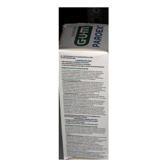 GUM Paroex prevention mouthwash 500ml è un collutorio che aiuta a rimuovere la placca accumulata tra i denti. Promuove l'igiene orale e la protezione delle gengive, specialmente quando le gengive sono sensibili. Ideale per le persone con problemi gengivali, specialmente se hanno gengive sensibili. Raccomandato anche per i portatori di ortodonzia, impianti, protesi o altri tipi di protesi.