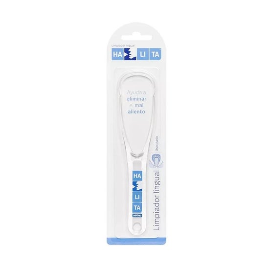Halita Lingual Scraper aiuta a mantenere un alito fresco grazie alla pulizia quotidiana della lingua. Halita Lingual Scraper è un trattamento anti-alito cattivo che integra lo spazzolino e aiuta a rimuovere il rivestimento batterico della lingua, che contiene i batteri che producono CVS (composti volatili di zolfo), la causa principale dell'alito cattivo. I suoi due lati, uno con profilo adattato alla lingua e l'altro con profilo liscio per la pulizia dei lati, facilitano la pulizia della parte posteriore della lingua, principale serbatoio dei batteri responsabili dell'alito cattivo. Halita Lingual Scraper aiuta a mantenere un alito fresco grazie alla pulizia quotidiana della lingua. Halita Lingual Scraper è un trattamento anti-alito cattivo che integra lo spazzolamento dei denti e aiuta a rimuovere il rivestimento della lingua carico di batteri.