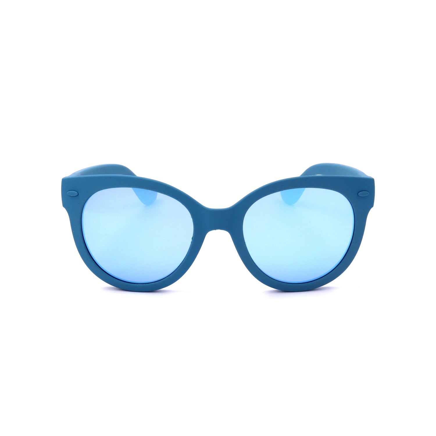 Occhiali da sole dal moderno design unisex con un indice di protezione solare molto elevato. Hanno lenti in cellulosa specchiata di colore azzurro, che fungono da barriera contro il 100% dei raggi UV. Hanno una resistente montatura in plastica blu che si adatta comodamente a tutte le anatomie. Aiutano a mantenere l'idratazione naturale degli occhi, prevenendo la secchezza causata da fattori ambientali. Sono adatti alle passeggiate all'aperto, ai luoghi con molta luce o per completare qualsiasi look. Testato sotto controllo oftalmologico.