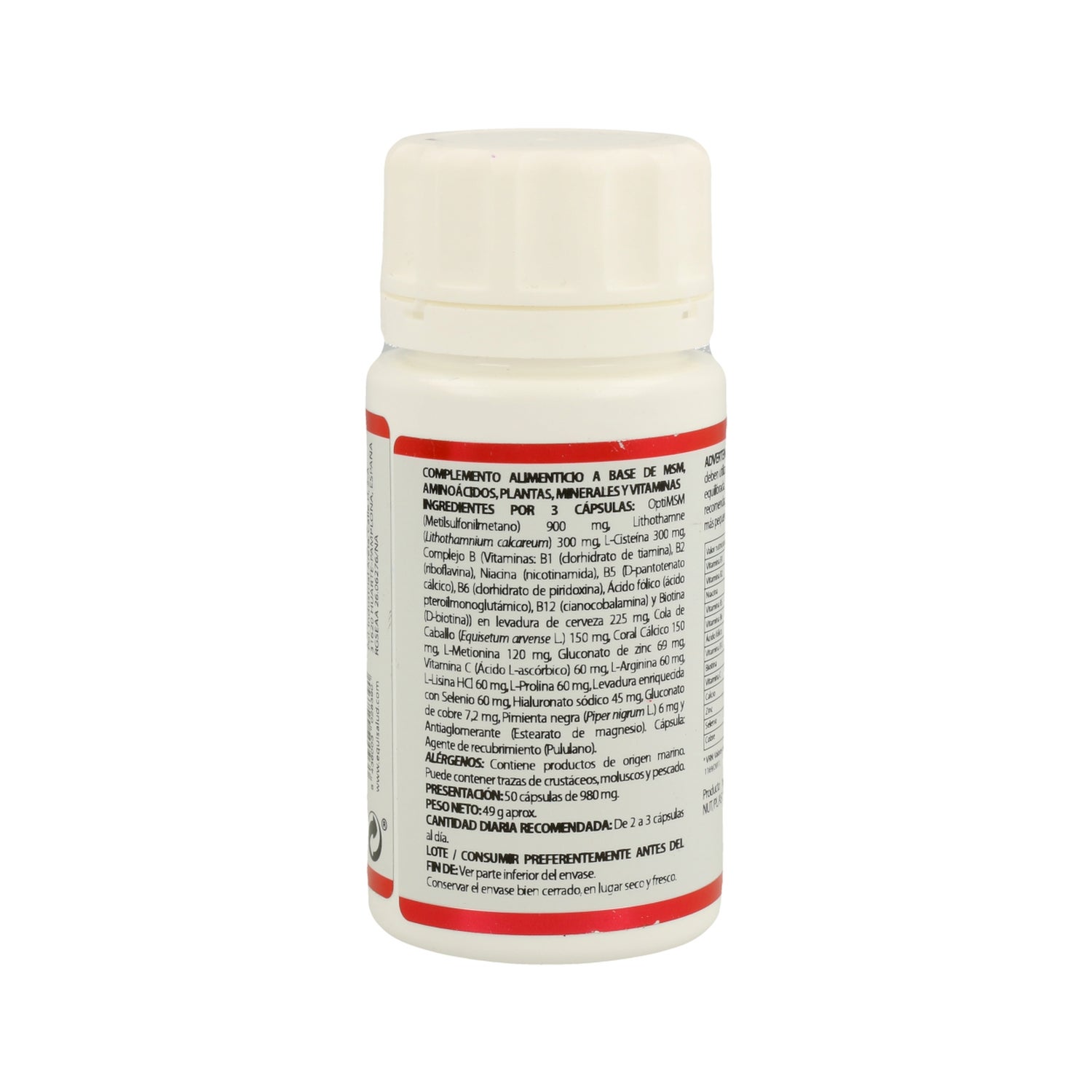 Integratore alimentare a base di MSM, aminoacidi, piante, vitamine e minerali. Gli integratori alimentari non devono essere utilizzati come sostituto di una dieta varia ed equilibrata. Non superare la dose giornaliera espressamente raccomandata. Tenere fuori dalla portata dei bambini più piccoli. Contiene prodotti di origine marina. Può contenere tracce di crostacei, molluschi e pesce.