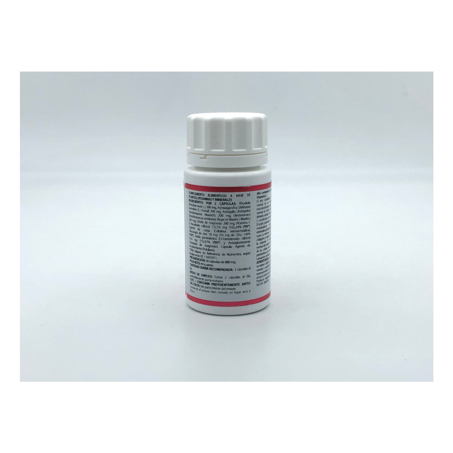 RODIOLA. ASHWAGANDHA. ASTRÁGALO. vitamina c. zinco eleuterococco. Acido pantotenico, magnesio;
