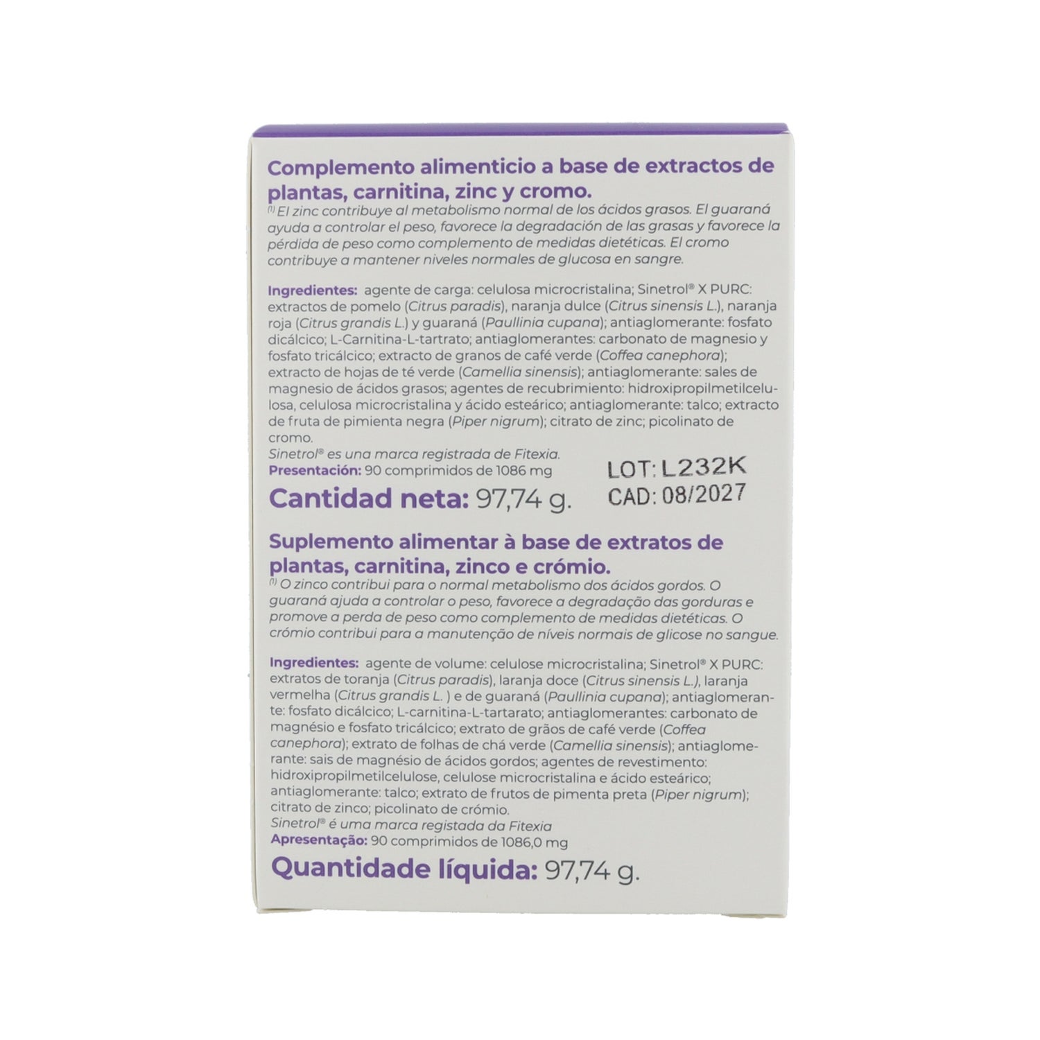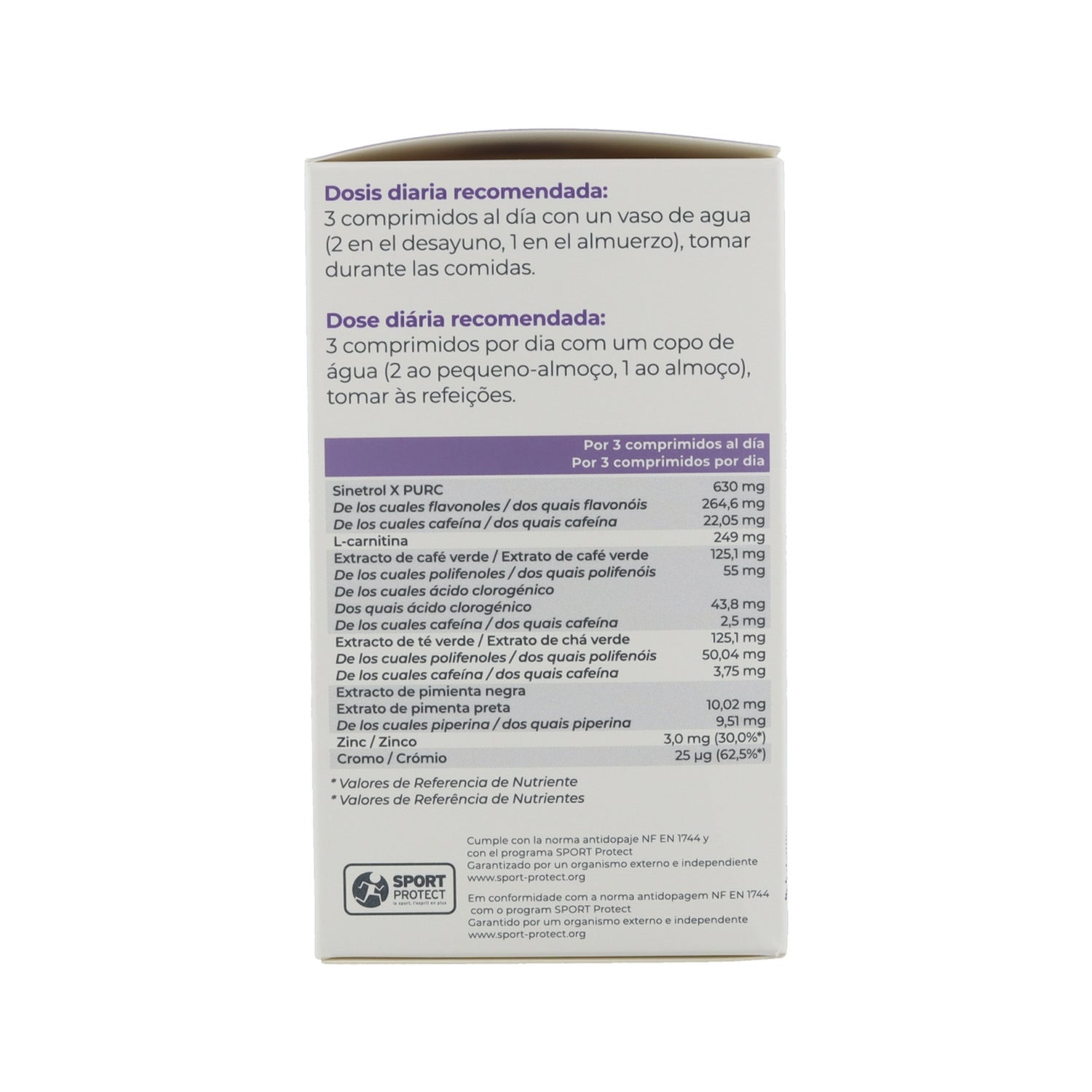 SinetrolX pur: estratti di pompelmo (Citrus paradisi), arancia dolce (Citrus sinensis L.), arancia rossa (Citrus sinensis L.) e guaranà (Paullinia cupana), agenti di carica cellulosa microcristallina, agenti di carica: fosfato dicalcico, fosfato tricalcico; L-carnitina L-tartrato, Svetol: estratto di caffè verde (Coffea canephora); estratto di foglie di tè verde (Camellia sinensis), agente antiagglomerante: sali di magnesio degli acidi grassi; agenti di rivestimento: idrossipropilmetilcellulosa, cellulosa microcristallina, acido stearico; antiagglomerante: biossido di silicio; estratto di pepe nero (Piper nigrum); citrato di zinco, picolinato di cromo.