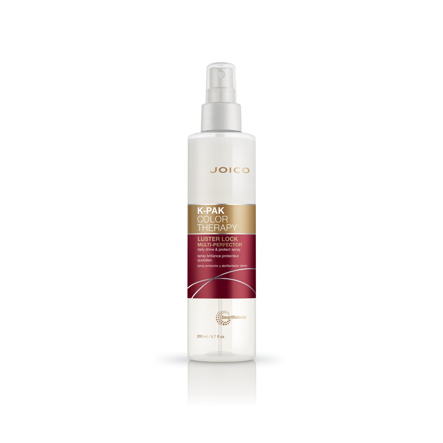 Joico K-Pak Color Therapy Luster Lock Multi-Perfector Spray 200ml è uno spray leave-in progettato per la cura quotidiana dei capelli. Questo prodotto aiuta a mantenere l'intensità del colore e l'idratazione, contribuendo a prevenire lo sbiadimento dello stesso.