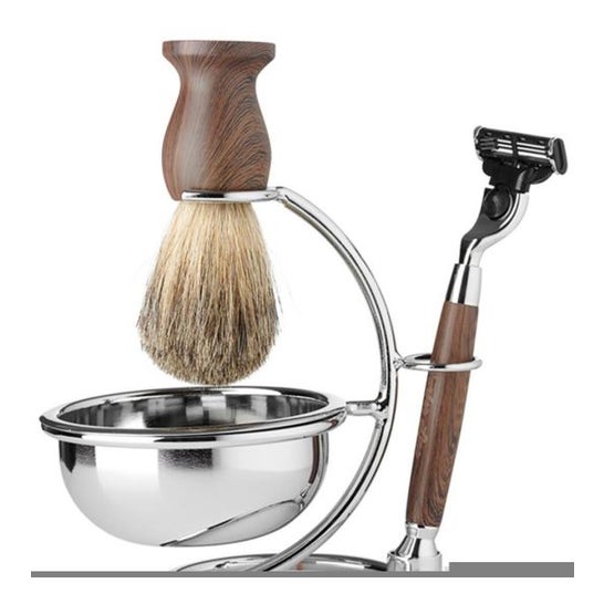Set da barba classico per uomini che non vogliono rinunciare al piacere della rasatura all'antica. Contiene un rasoio per una rasatura precisa, un pennello ergonomico che ti garantirà comfort e una ciotola, utensile indispensabile per qualsiasi barbiere.