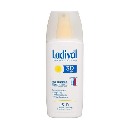 Ladival Sensitive Skin Spray SPF30 150ml è una crema solare a copertura media (SPF30) la cui formula, priva di olio ed emulsionanti PEG, la rende adatta a tutti i tipi di pelle, comprese quelle con allergie al sole, intolleranza al sole o pelle incline all'acne.