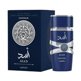 Lattafa Asad Zanzibar Eau de Parfum 100 ml profumo maschile esotico evoca l'essenza vibrante dell'isola di Zanzibar. Presenta un profilo fresco e gourmand, con un carattere seducente e versatile, adatto per l'uso quotidiano o per serate speciali.