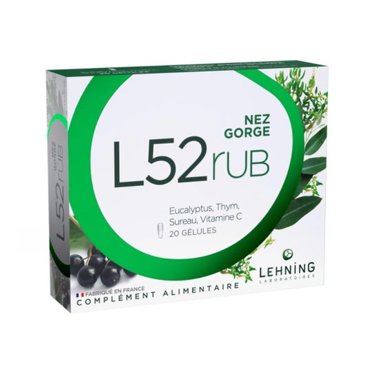 Lehning L52 Rub Nariz Garganta si presenta in comode capsule che facilitano la sua integrazione nella tua routine quotidiana. Questo integratore alimentare è un'opzione naturale e pratica per affrontare l'inverno con fiducia. Ogni ingrediente è stato accuratamente selezionato per offrire benefici specifici, rispettando la funzionalità del tuo organismo. Si raccomanda la supervisione di un professionista in caso di dubbi sul suo utilizzo.