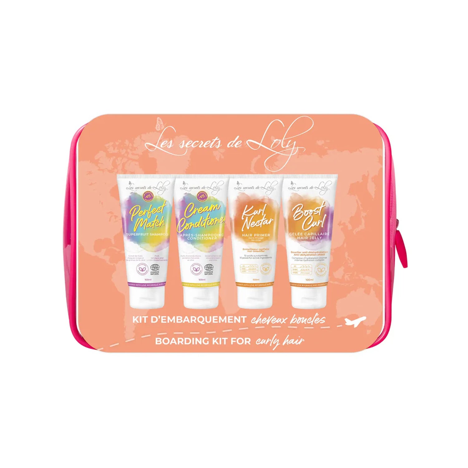 Les Secrets de Loly Kit di Cura per Capelli Ricci è un insieme progettato specificamente per la cura dei capelli ricci. Questo kit include quattro prodotti in formato viaggio da 100 ml ciascuno, ideali da portare ovunque durante l'estate.