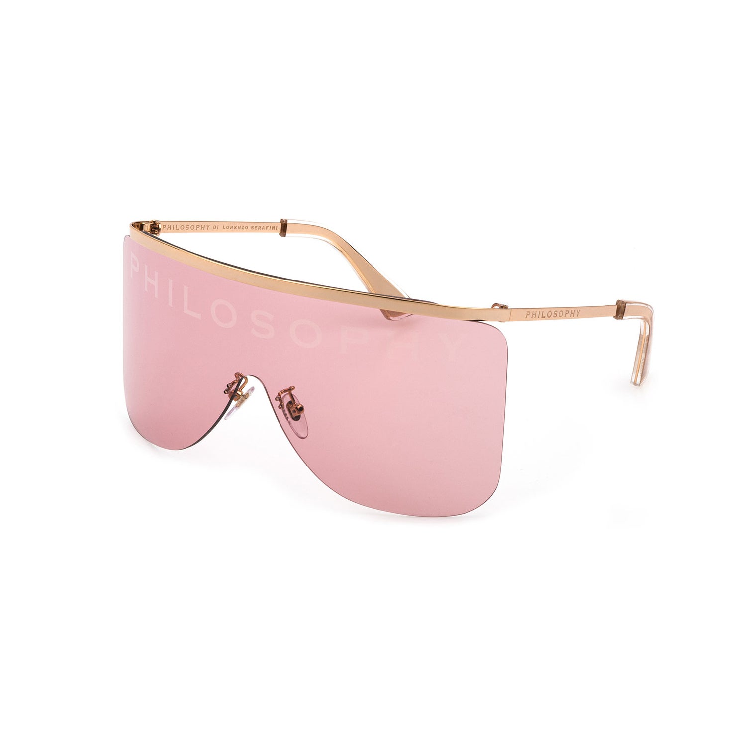Con una montatura metallica color oro rosa e lenti rosa di 99 mm, questi occhiali: