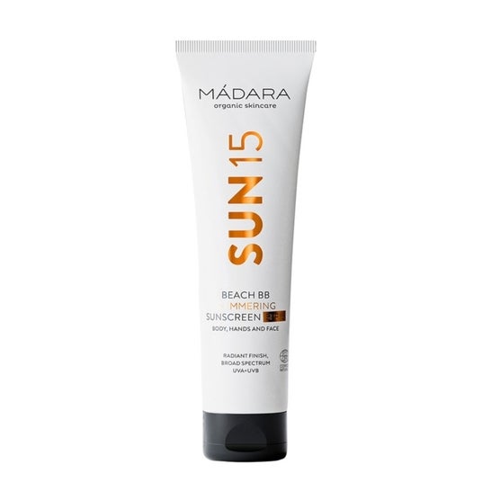 Mádara Sun15 Bb Cream Beach 100ml è una BB Cream con protezione solare SPF15 che contribuisce a dare un effetto luminoso alla pelle del viso e del corpo. Include filtri naturali UVA e UVB, aloe vera e particelle riflettenti la luce per un finish luminoso che mantiene la pelle idratata. È adatta a tutti i tipi di pelle.