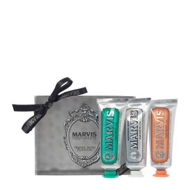 Marvis 3 Sapori Clwg25Ml è il cofanetto ideale per chi desidera un igiene orale completa e un esperienza sensoriale unica ad ogni spazzolamento. Contiene tre dentifrici da 25 ml ciascuno: