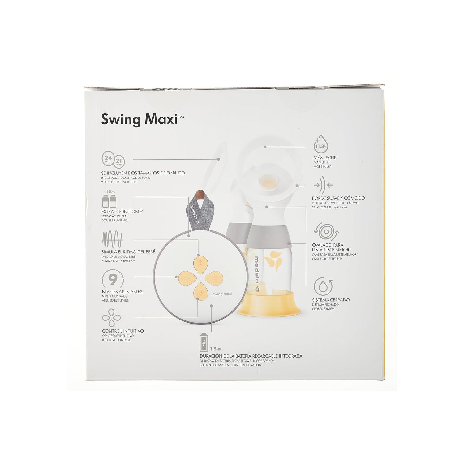 Medela Swing Maxi: Più latte, più comfort, più tempo con il bambino. Questo tiralatte elettrico doppio portatile con tecnologia di estrazione in due fasi funziona sia se desideri mantenere il tuo apporto, sia se hai bisogno di aiuto per affrontare i problemi che influenzano l'allattamento, o semplicemente vuoi trascorrere più tempo con il tuo bambino e meno tempo a estrarre latte.