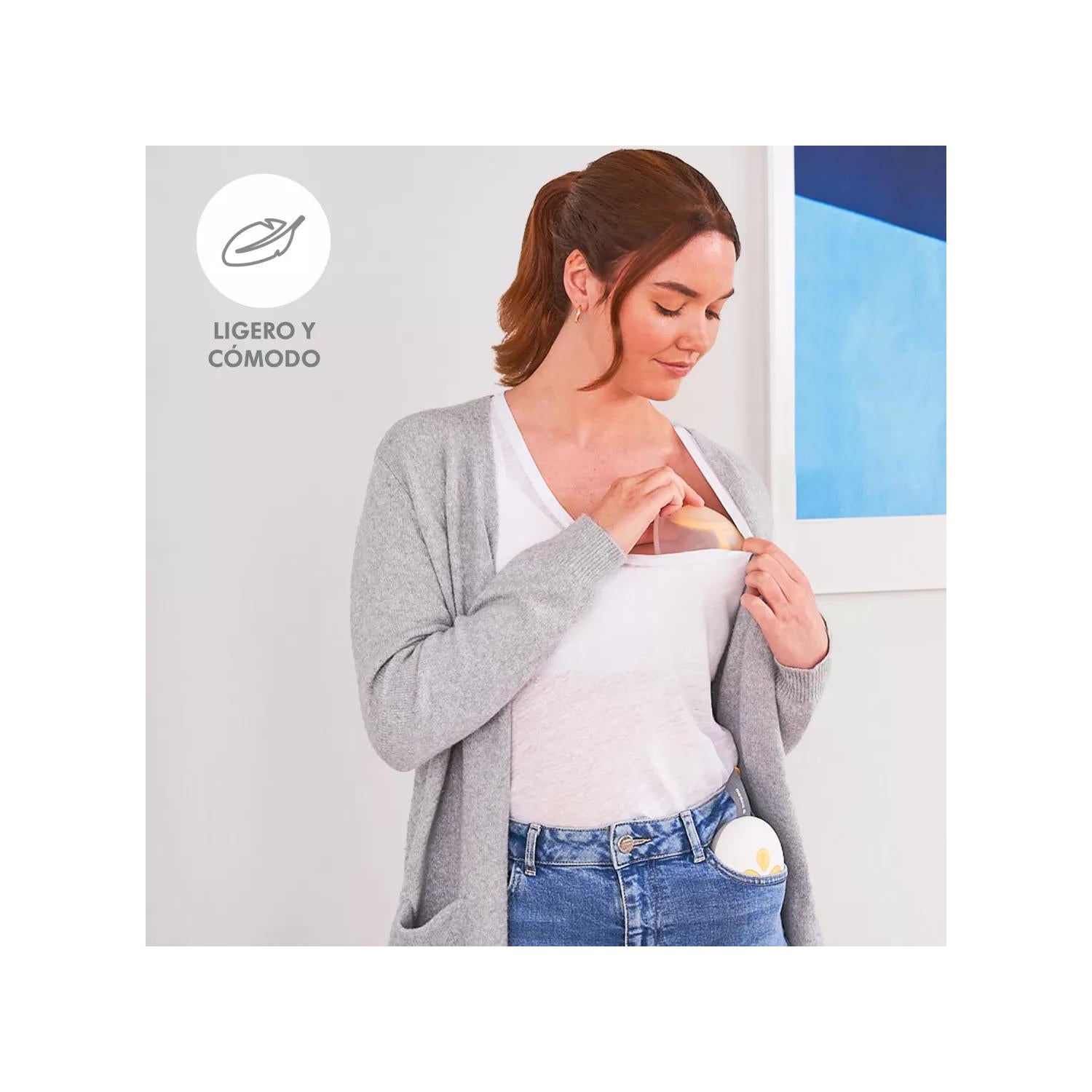 Questo dispositivo include una coppa di raccolta "manos libres" che si adatta anatomicamente alla forma del seno, favorendo un'estrazione efficace e comoda. La sua leggerezza, con un peso di soli 76 grammi per coppa, consente di essere discreto e comodo da indossare, anche sotto i vestiti. Inoltre, il suo design ultraleggero contribuisce alla mobilità dell'utente nei momenti di necessità.