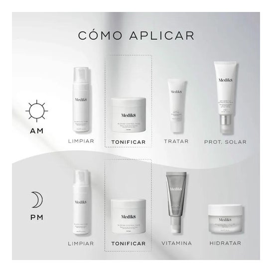 • Dopo la pulizia al mattino e/o alla sera, utilizza un dischetto per pulire delicatamente il viso, evitando l'area degli occhi e lasciando uno strato sottile di liquido.