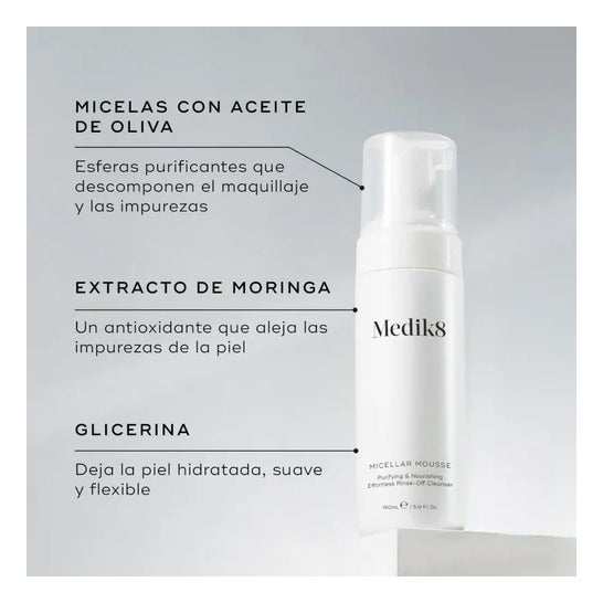 Medik8 Micelar Mousse 150ml è una mousse detergente ultrasoft che contribuisce a rimuovere i residui di trucco e le impurità dalla pelle.