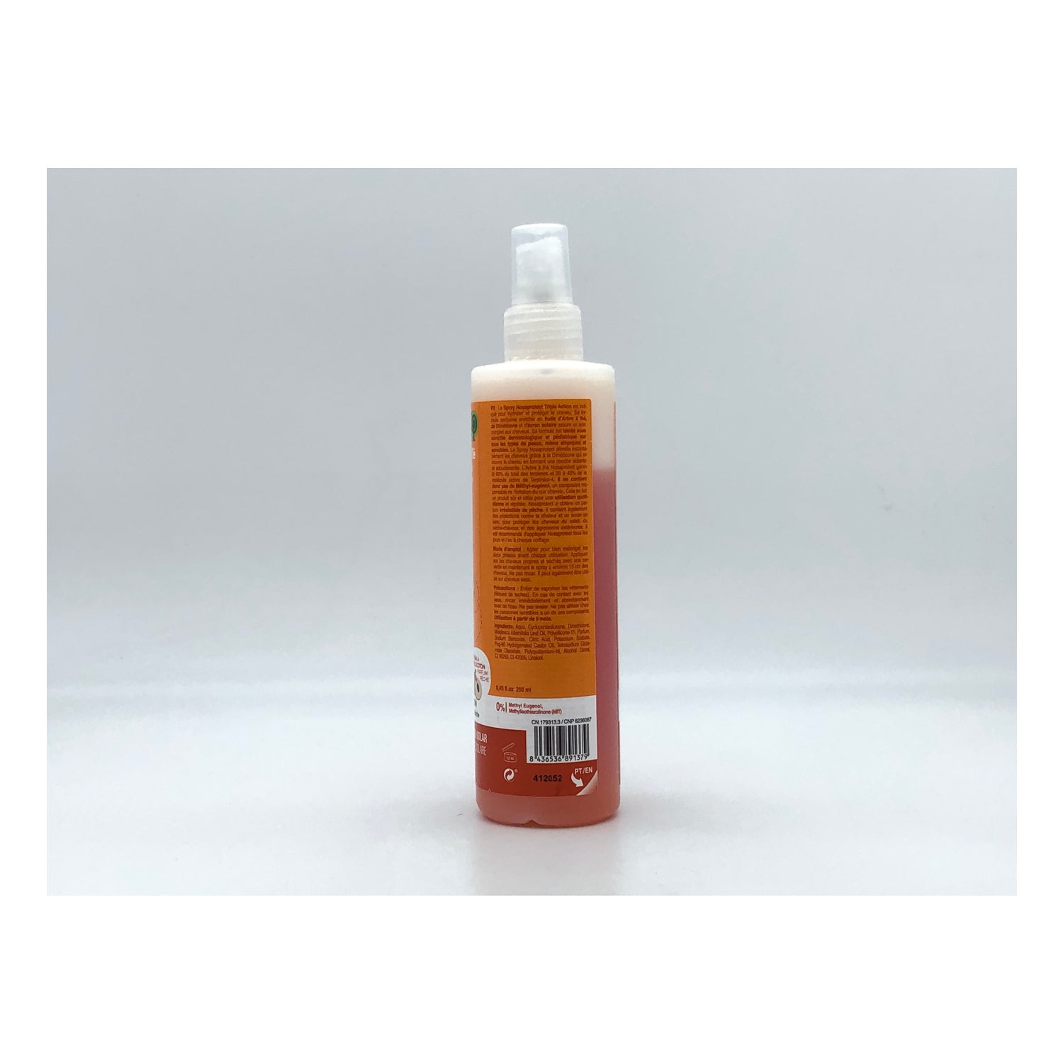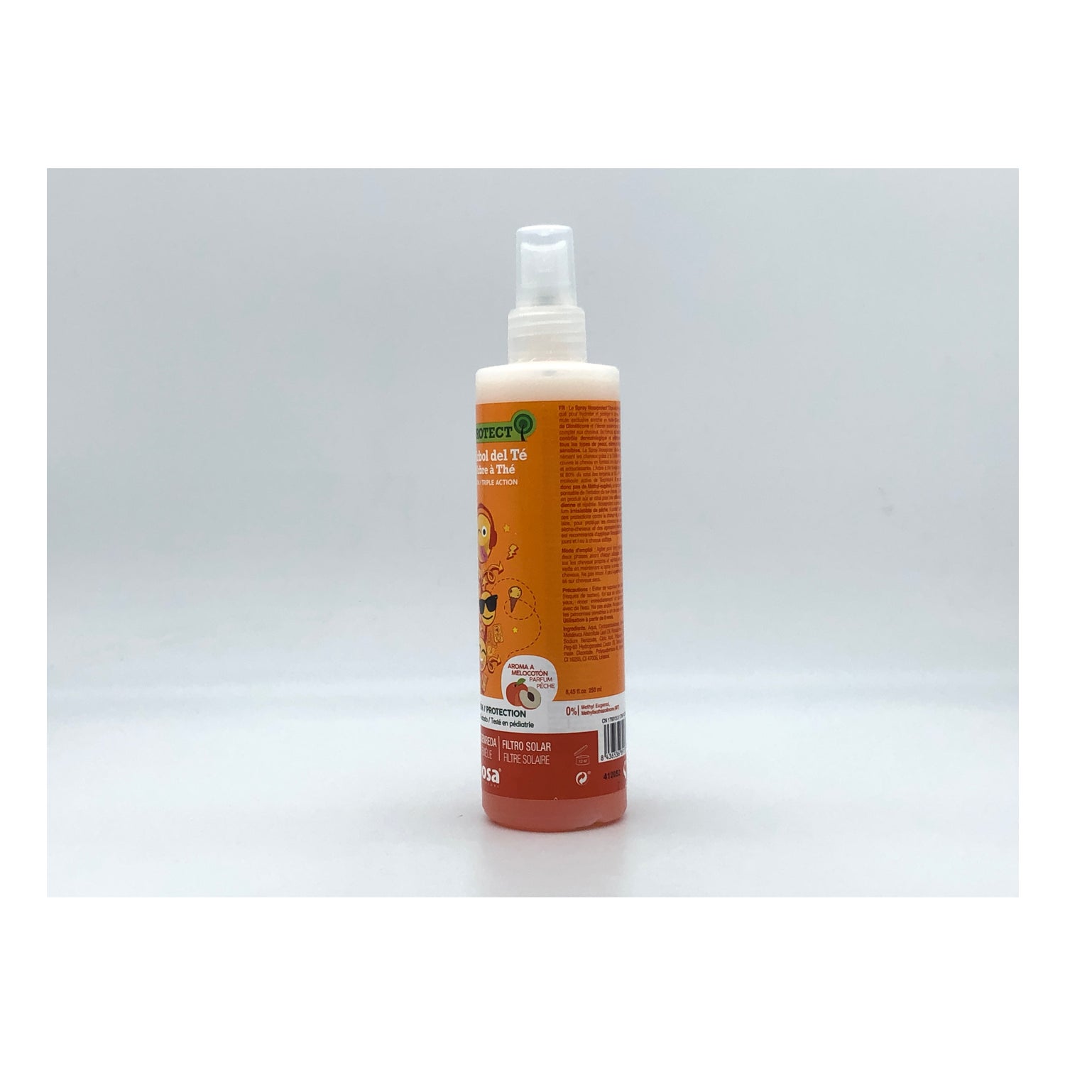 Nosa Tea Tree Spray Peach 250ml è uno spray al tea tree con profumo di pesca. Grazie all'olio di tea tree, al dimeticone e alla sua protezione solare, questa lozione spray ha una tripla azione: protegge, idrata e cura la struttura dei capelli. Inoltre, il suo profumo di pompelmo maschera completamente l'odore caratteristico di una lozione antipidocchi, donando ai capelli un profumo delicato.
