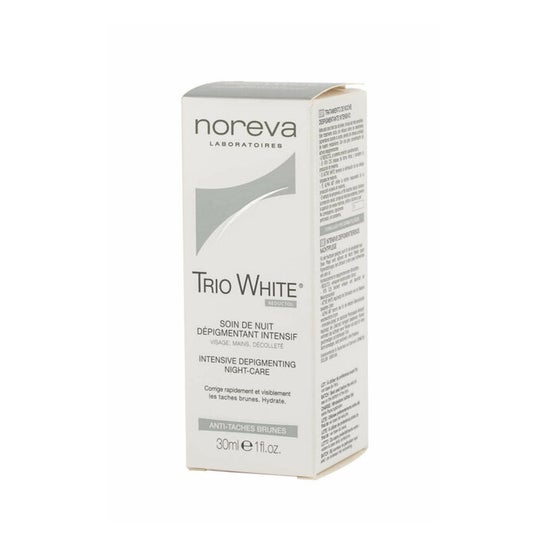 Noreva Trio White Night Depigmenting Treatment è un trattamento depigmentante notturno intensivo che blocca in modo efficace e duraturo la produzione di melanina, correggendo rapidamente e visibilmente le macchie esistenti, prevenendo la comparsa di nuove e migliorando la luminosità dell'incarnato.