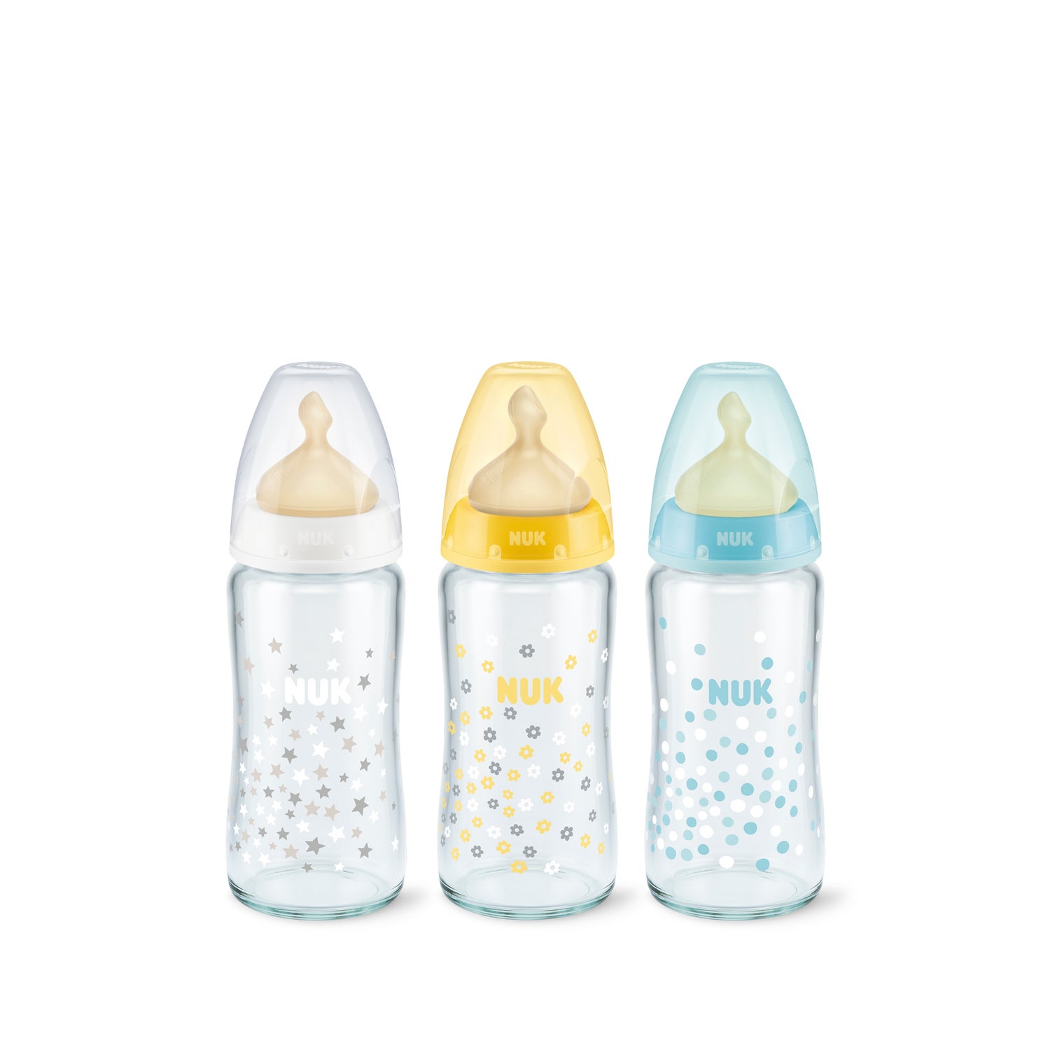 Bottiglia di cristallo a bocca larga in lattice NUK: un'ottima scelta per il tuo bimbo.