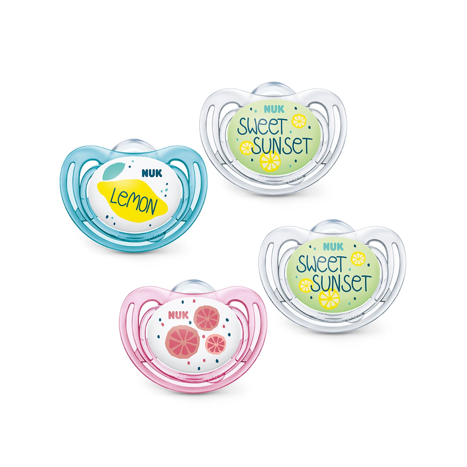 Succhietti in silicone per calmare il pianto, per bambini dai 6 ai 18 mesi. Nuk offre e si specializza in tutti i tipi di prodotti per bambini e neonati. Questo articolo offre un'alternativa per calmare i bambini irrequieti nel periodo del pianto o dei capricci. Offre due succhietti con un capezzolo o tettarella più piatta, in accordo con la capacità dei bambini in questa fase. Inoltre, ha una struttura più sottile e stretta per prevenire le malformazioni dei denti durante la crescita e lo sviluppo dentale.