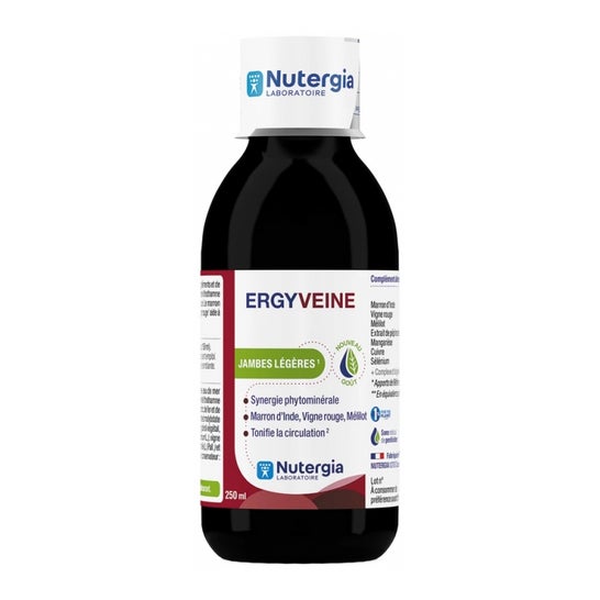 Nutergia Ergyveine 250 ml è un integratore alimentare liquido che combina oligoelementi e estratti di piante, arricchito con concentrato di acqua di mare deodorata e lithothamne per un apporto minerale unico.