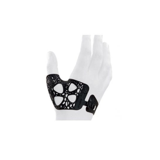 Ferula palmar preformata, stampata in 3D, indicata per contribuire al miglioramento dei sintomi della rizartrosi, o aiutare nella guarigione di lesioni come lo stiramento del pollice. Molto leggera, con un peso di 12g, offre una soluzione discreta e pratica. Il suo design ventilato aumenta il comfort mentre evita la sensazione di calore e umidità. Di facile manutenzione, è resistente all'immersione in acqua fredda o calda e offre un'asciugatura rapida. Mano destra, taglia 2, per un diametro del palmo della mano di 19 a 21cm.