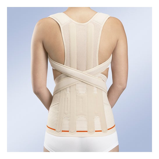 Il corpetto dorsolombare di Orliman è un tessuto progettato per fornire supporto e sicurezza alla zona dorsale, garantendo comfort e adattamento. È pensato per pazienti che hanno subito traumi dorsolombari, ernie del disco, osteoporosi e processi post-operatori. Le bretelle sono imbottite per fornire supporto e comfort a contatto con la pelle. Il tessuto del capo è traspirante dall'interno e incorpora stecche di acciaio flessibile. Il corpetto dorsolombare di Orliman fornisce supporto lombosacrale, rendendolo un capo perfetto per coloro che necessitano di contenimento toracico durante la giornata lavorativa. È inoltre raccomandato per persone che necessitano di protezione contro sforzi fisici della curva cifotica o lombalgie. Il pezzo dorsale ha delle bretelle che, posizionate sulle spalle, producono un effetto di decoaptazione con retropulsione, per fornire il giusto supporto sulle lombari.