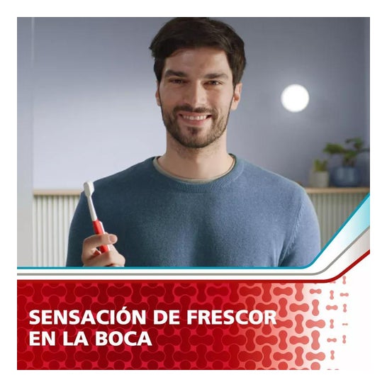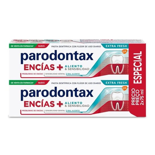 Dentifricio al gusto di menta che aiuta a pulire la bocca e a proteggere le gengive sensibili. Aiuta inoltre a migliorare l'alito e a prevenire la proliferazione di batteri nocivi nel cavo orale. Aiuta inoltre a rafforzare e a lenire le mucose dalle irritazioni. Ha anche una formula al fluoro che favorisce la protezione dello smalto dei denti dall'erosione e dalle macchie. Viene fornito in una confezione da due unità. Scientificamente testato.