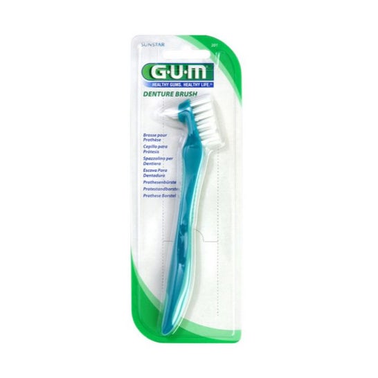 Lo spazzolino per protesi dentaria GUM® ,confilamenti di nylon duro e due testine, consente una corretta igiene della protesi. La spazzola conica permette l'accesso e la pulizia di piccole aree di difficile accesso.