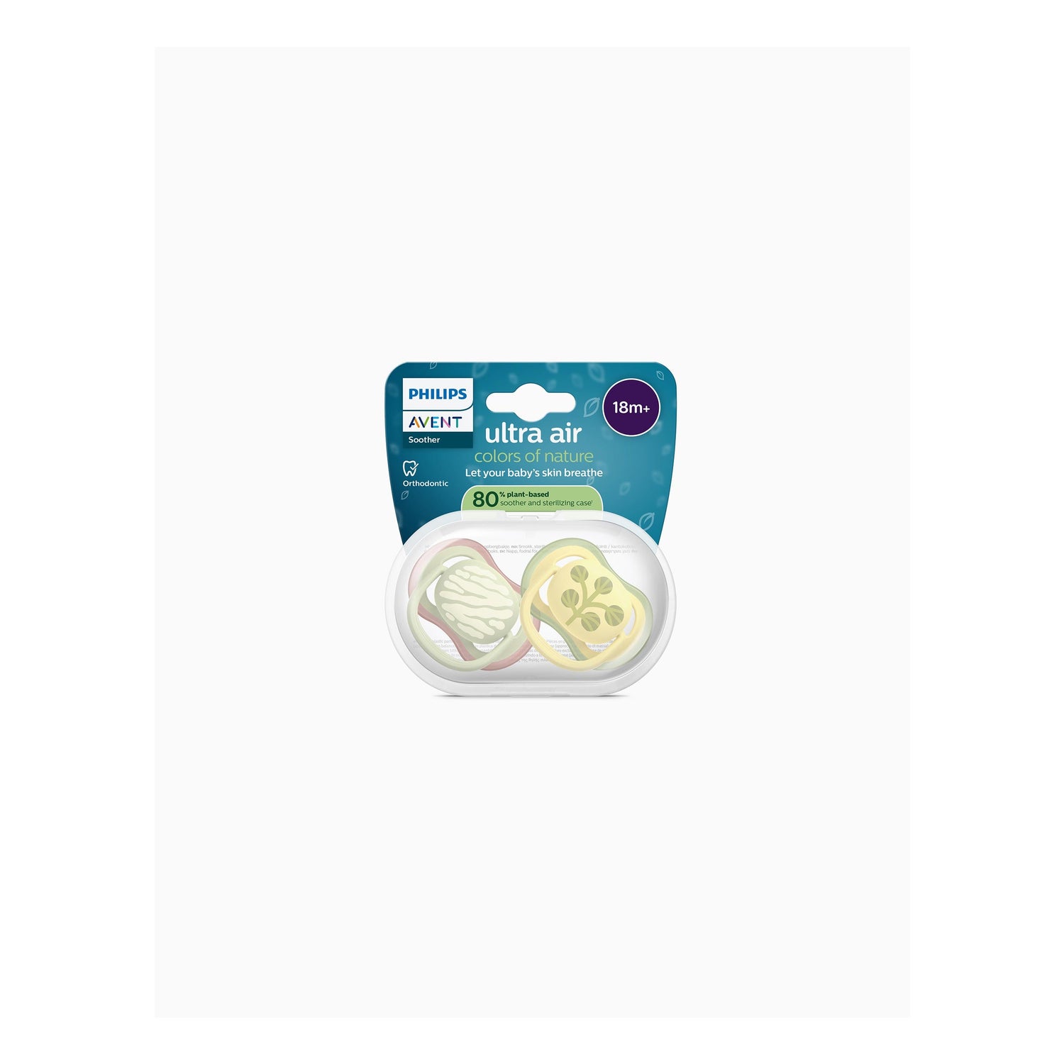Philips Avent Ultra Air Deco 18M+ Mint/Ivory 2uds è un ciuccio progettato per fornire il massimo comfort durante la fase della dentizione. Questo prodotto è adatto per bambini a partire da 18 mesi e si concentra sulla promozione di uno sviluppo orale sano, rispettando al contempo l'ambiente grazie alla sua realizzazione con materiali sostenibili.