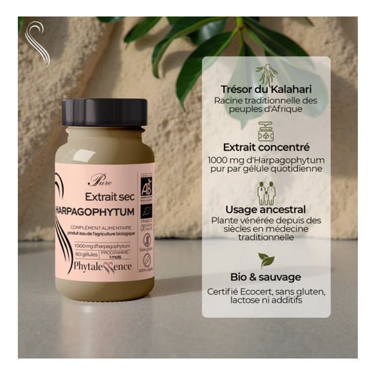 Phytalessence Estratto Secco di Arpagofito Bio 60caps è un integratore alimentare a base di estratto secco di arpagofito, che aiuta a mantenere la salute delle articolazioni e una buona mobilità.