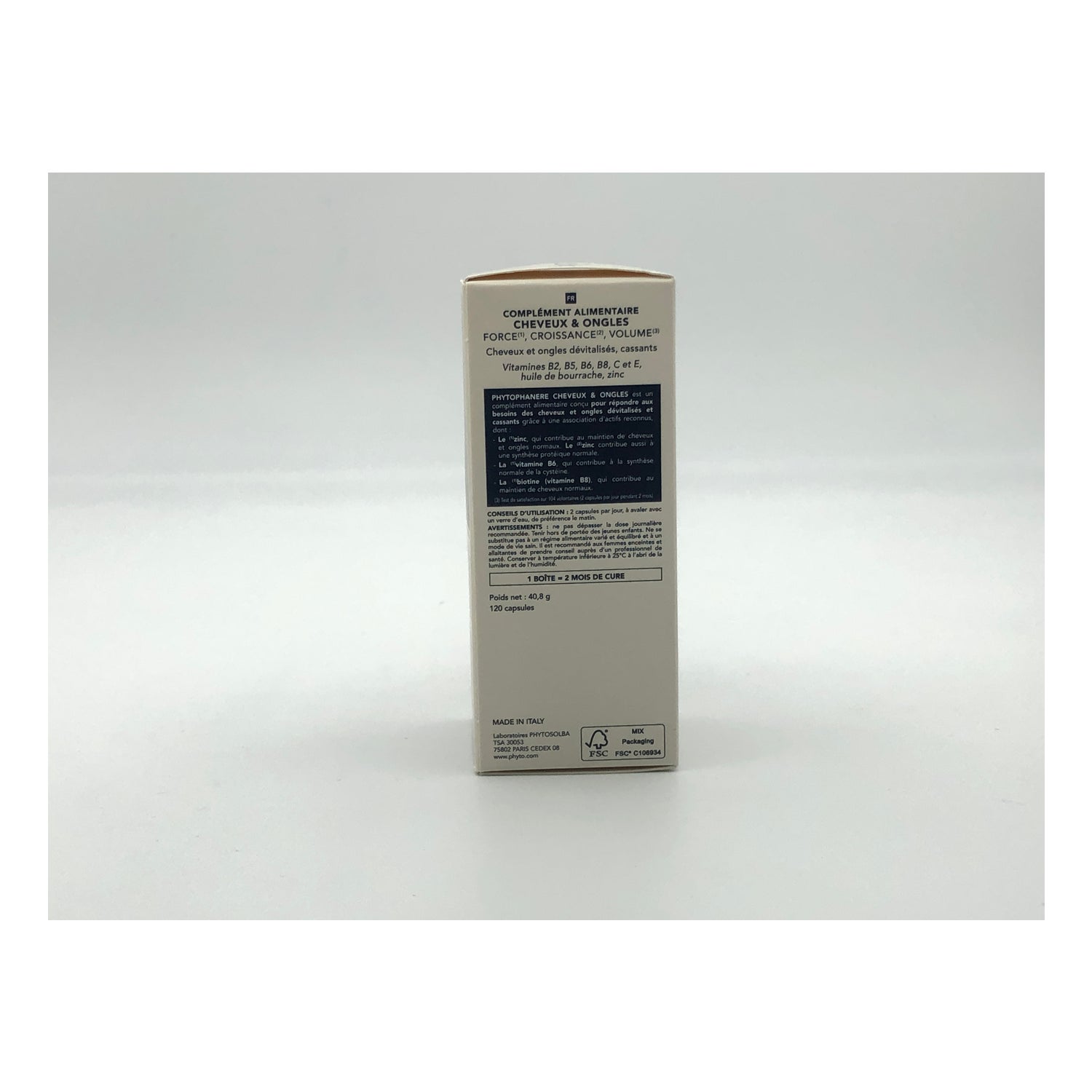 Phytophanère è un integratore alimentare che combatte attivamente la caduta dei capelli grazie al suo elevato complesso di vitamine B2, B5, B6, B8, C ed E. Inoltre, mantiene le unghie sane e forti grazie alla presenza di componenti come vitamina C, vitamina E e Zinco che collaborano alla formazione del collagene (vitamina C), alla protezione delle cellule dai radicali liberi (vitamina E) e alla riparazione cellulare (zinco).